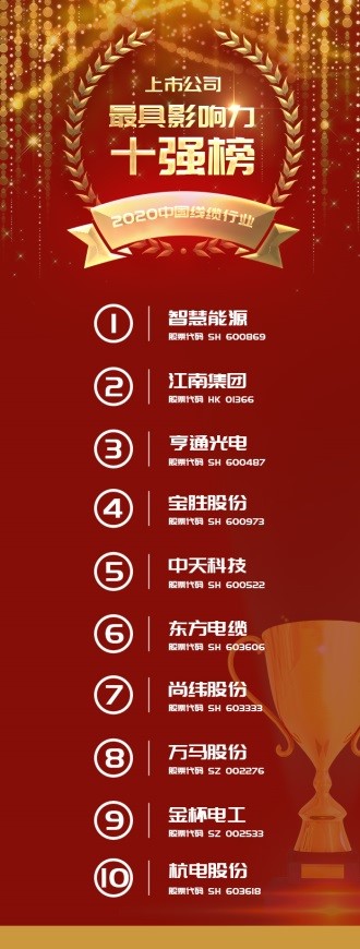 2020年中国电线电缆行业上市公司最具影响力十强